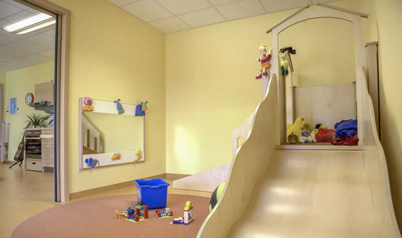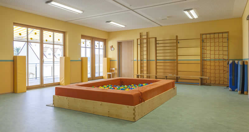 Unser Haus bietet Platz für bis zu 84 Kindergartenkinder und 24 Krippenkinder.