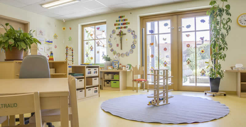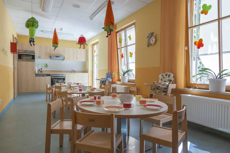 Diese Kinder werden in drei Kindergartengruppen, einer altersgemischten Gruppe sowie einer Kinderkrippe betreut.