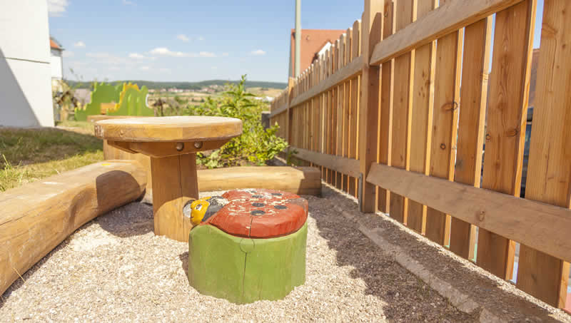 Zusätzlich haben wir für unsere „Kleinsten“ eine „Bobbycarrennstrecke“, eine „Dinorutschbahn“ und einen eigenen Matschbereich.
