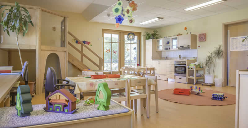 Diese Kinder werden in drei Kindergartengruppen, einer altersgemischten Gruppe sowie einer Kinderkrippe betreut.